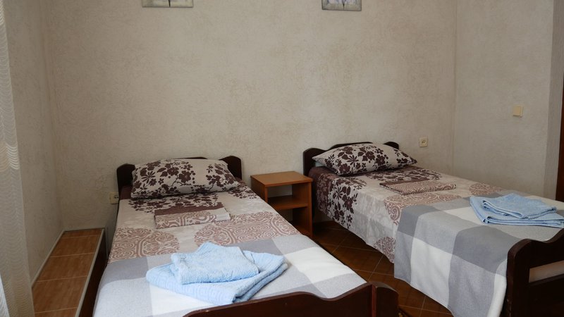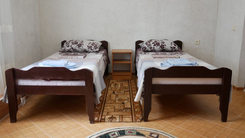 Оснащение: две кровати, прикроватные тумбочки, шкаф. Санузел с душем. Телевизор, холодильник, кондиционер.