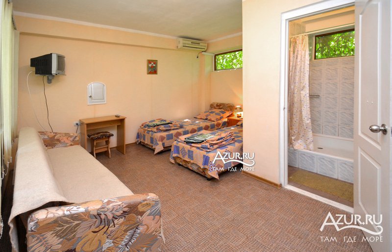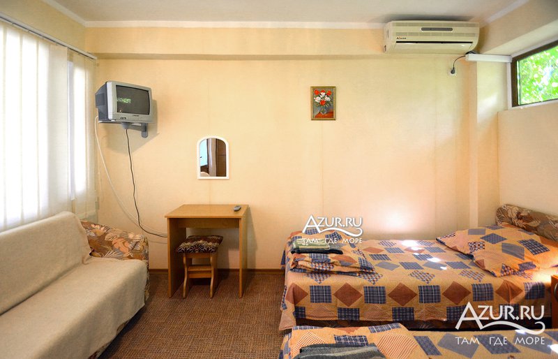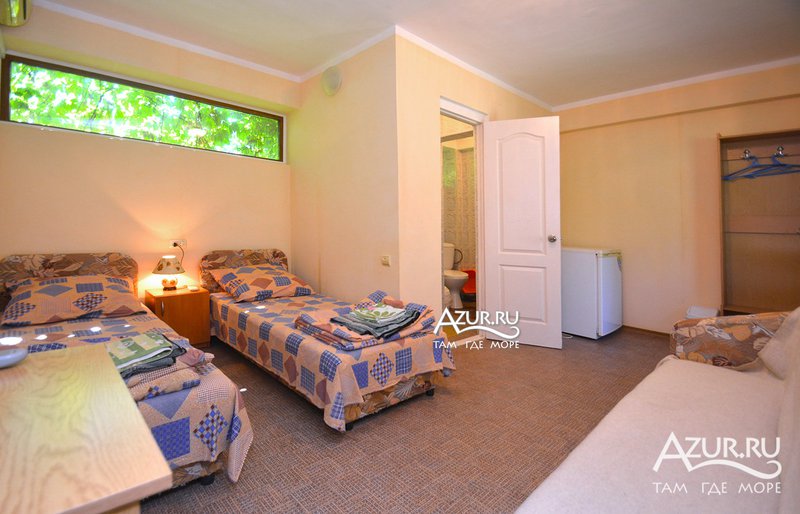 Оснащение: площадь номера 25 кв.м.,односпальные кровати и диван-кровать, пуфики, прикроватные тумбочки, журнальный столик, стол, вешалка, зеркало, сплит-система, телевизор, кабельное ТВ, интернет, холодильник, эл. чайник