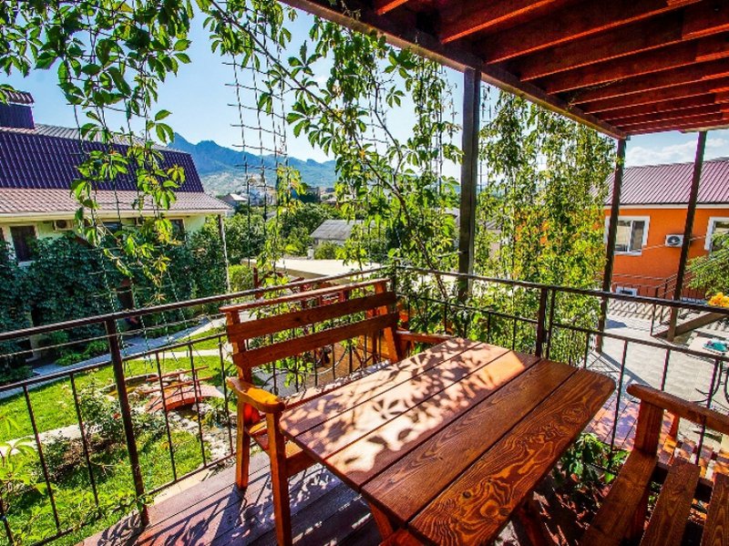 В каждом номере Wi-Fi. Современный ремонт. Мебель новая. Душ, санузел в номере. Общая терраса с видом на сад,около каждого номера столик и стулья.