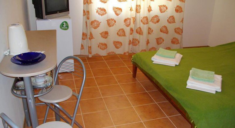 Оснащение:все номера оборудованы кондиционерами и санузлами. В каждом номере деревянные кровати с пружинными матрасами, сплит-система кондиционирования, шкаф, барный столик с электрочайником, холодильник, телевизор, просторный душ с горячей водой. Доп.место - раскладушка с деревянными ламелями и матрасом. Площадь номера – 20 м кв.