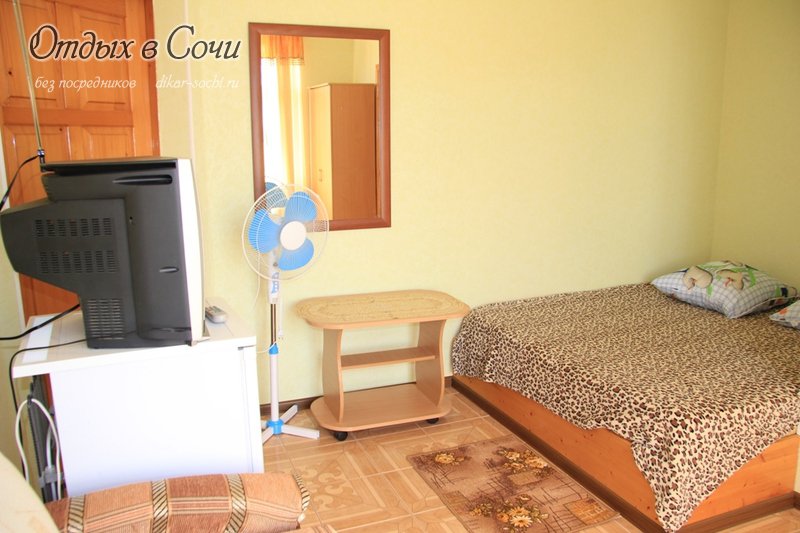 Оснащение: ТВ, холодильник, тумбочки, двуспальная или 2 односпальные кровати, шкаф, зеркало, душ, санузел, вентилятор. Доп. место полное - кровать или диван-чебурашка.